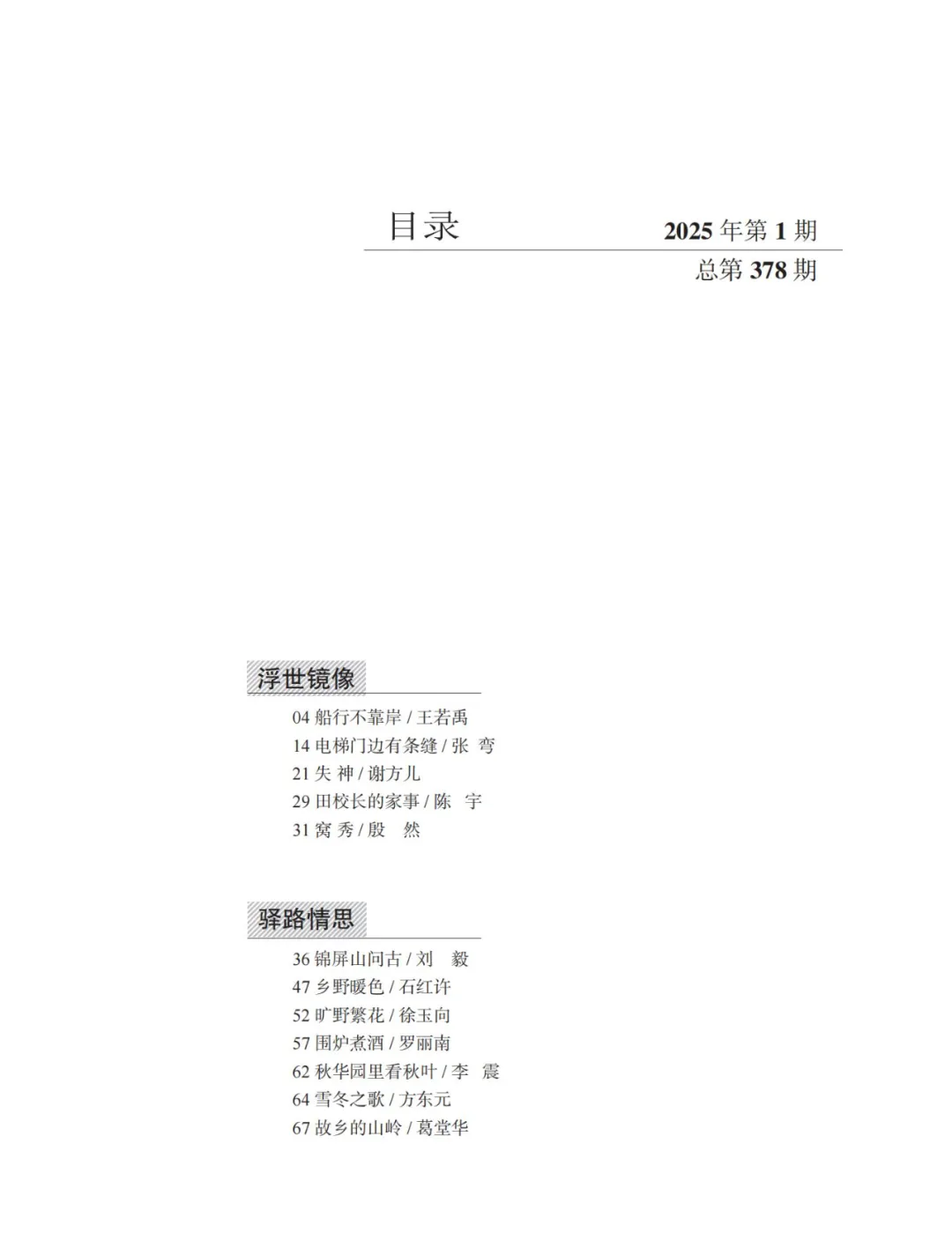 《连云港文学》2025年第1期目录